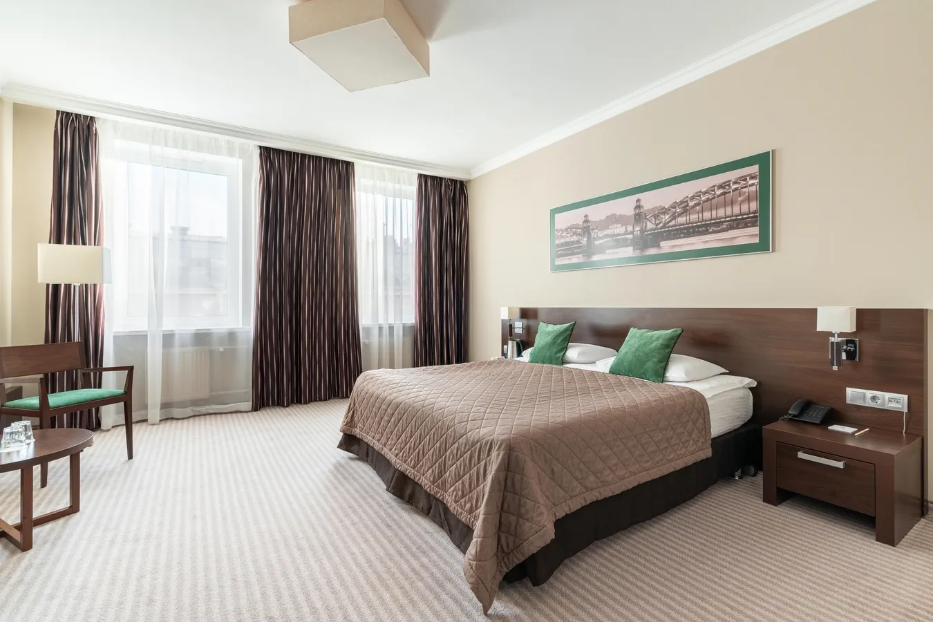 Начните день со вкусного завтрака, исследуйте город, а вечером насладитесь бокалом вина или освежающим коктейлем в лаундже отеля. Проведя в Санкт-Петербурге день, полный удивительных открытий, вы сможете расслабиться в уютном элегантном номере с круглосуточным обслуживанием и удобствами в номере.